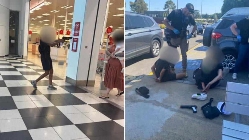 ஷாப்பிங் சென்டருக்குள் போலி துப்பாக்கிகள...